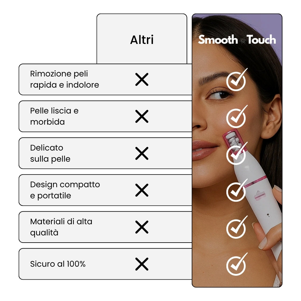 "È incredibile quanto sia delicato! La mia pelle sensibile non ha mai reagito così bene a un dispositivo per peli. Lo uso tutti i giorni senza problemi."